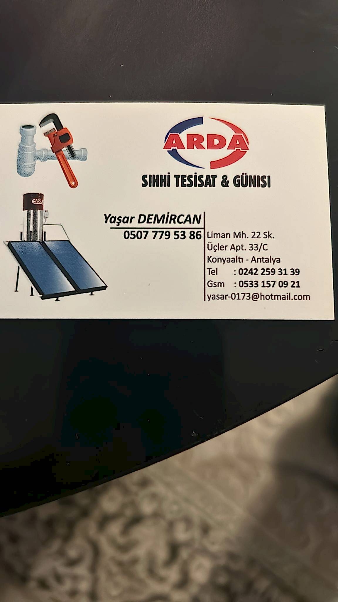 Arda Sıhhi Tesisat, Antalya ve tüm ilçelerinde su bataryası tamiri yapıyor. Konyaaltı'nda hizmet veren firma...
